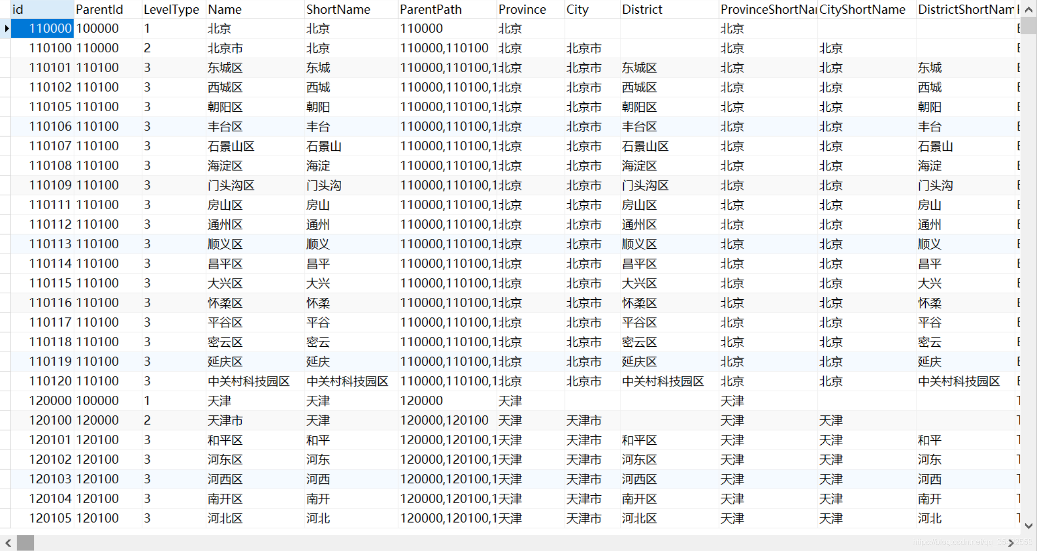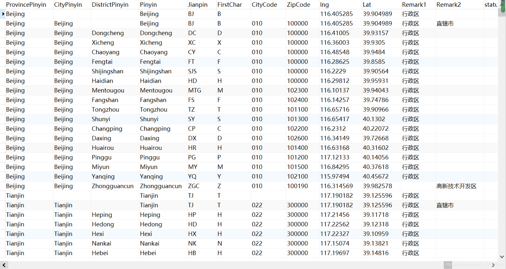 提供了简称、全称、真实的地区id编号,经纬度等。大家可自行查看。