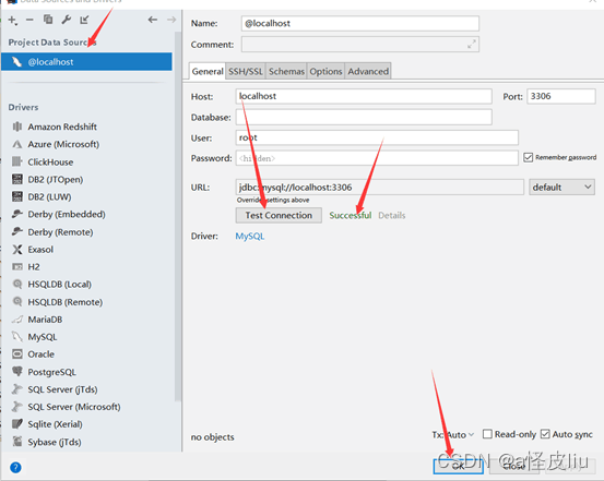 之后进入@localhost里面,点击测试连接,显示successful之后就代表成功,点击ok