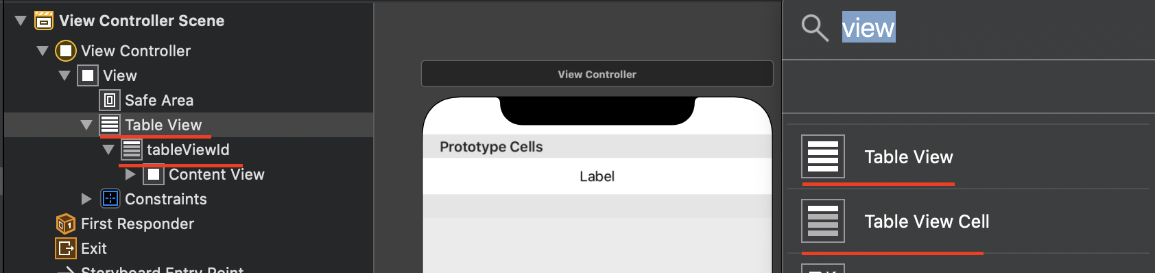 给界面添加 Table View 布局,在Table View 里面添加 Table View Cell 布局,Table View Cell 里面就是根据需求添加的自定义布局了,这些都可以通过拖动相应的布局实现