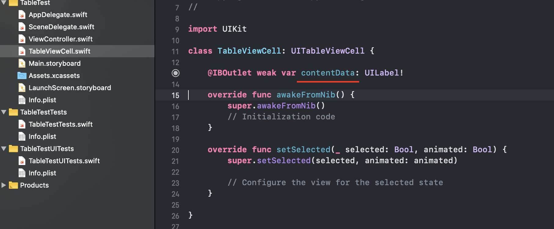cell:TableViewCell = tableView.dequeueReusableCell(withIdentifier: “tableViewId”, for:indexPath)