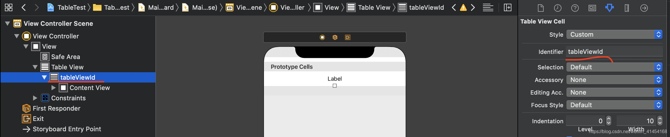 要将上图红线标示的 UILabel 与 UITableViewCell 关联,还需要先实现下图的步骤