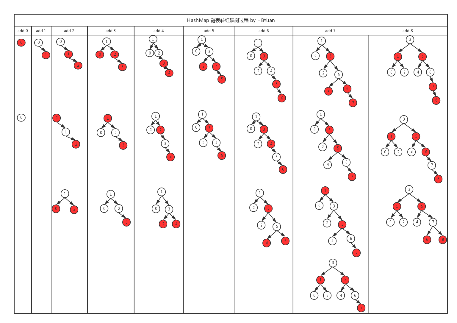 ,通过key的hash值计算数据所在数组下标,多个key的hash相同或hash计算的数组下标相同,但是key值不同时,检查节点是否为树节点,是树节点则往树节点添加,如果是普通节点则往链表尾追加Entry,当链表长度大于8时,则将链表转为红黑树。