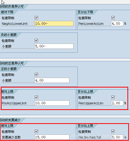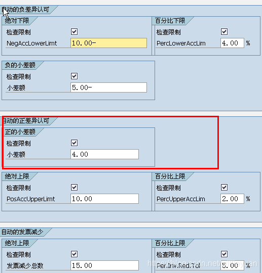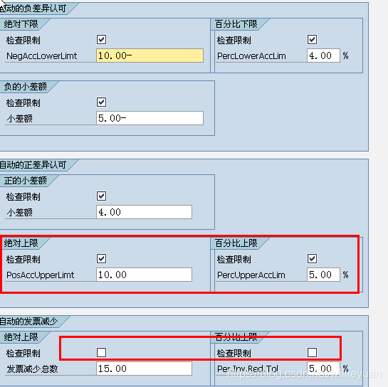 后台配置:SPRO —- 物料管理—后勤发票检验—收到的账单—配置指定供应商容差