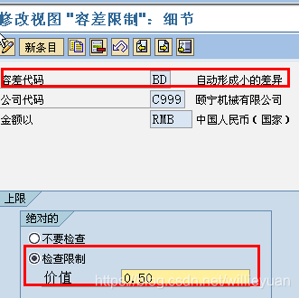 (1)、创建新条目,设置容差组。同时,如上图通过XK02设置供应商主数据的容差组。