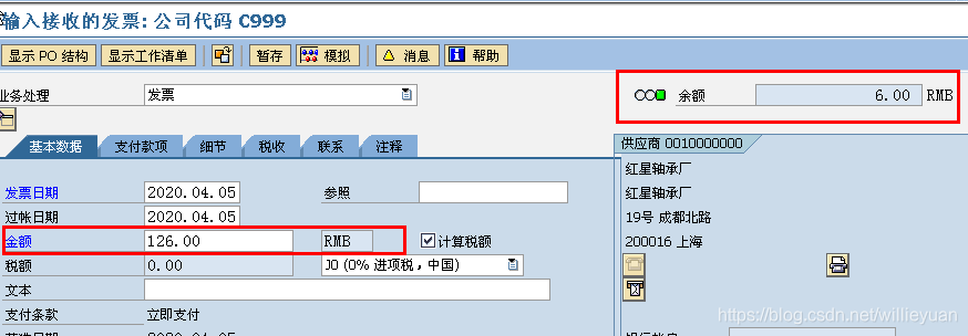 由上可知,发票上限取消,但正差异120*5%=6RMB,6.01>6RMB,故MIRO报错。