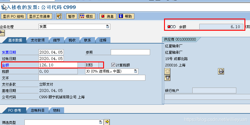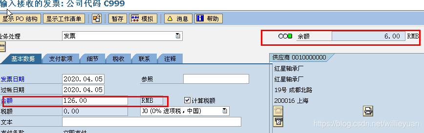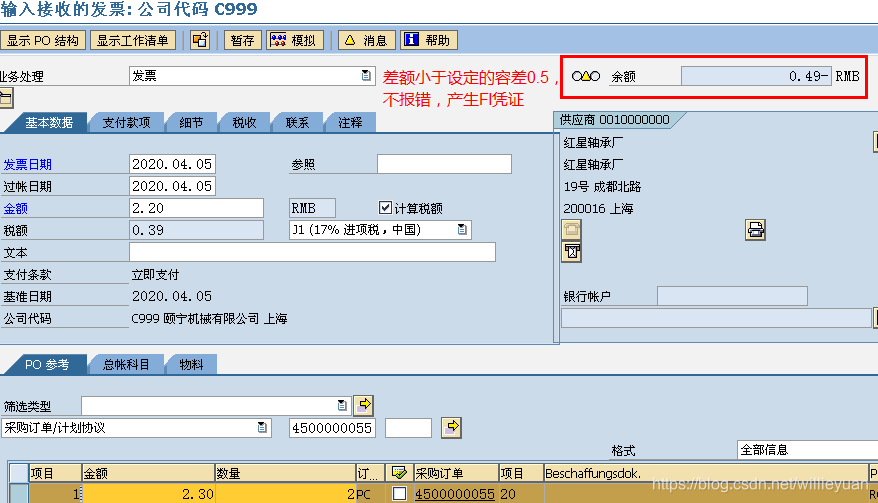 供应商的发票金额和我们系统的GR累计应计金额差异很小,则允许过账,给供应商发票的应付。