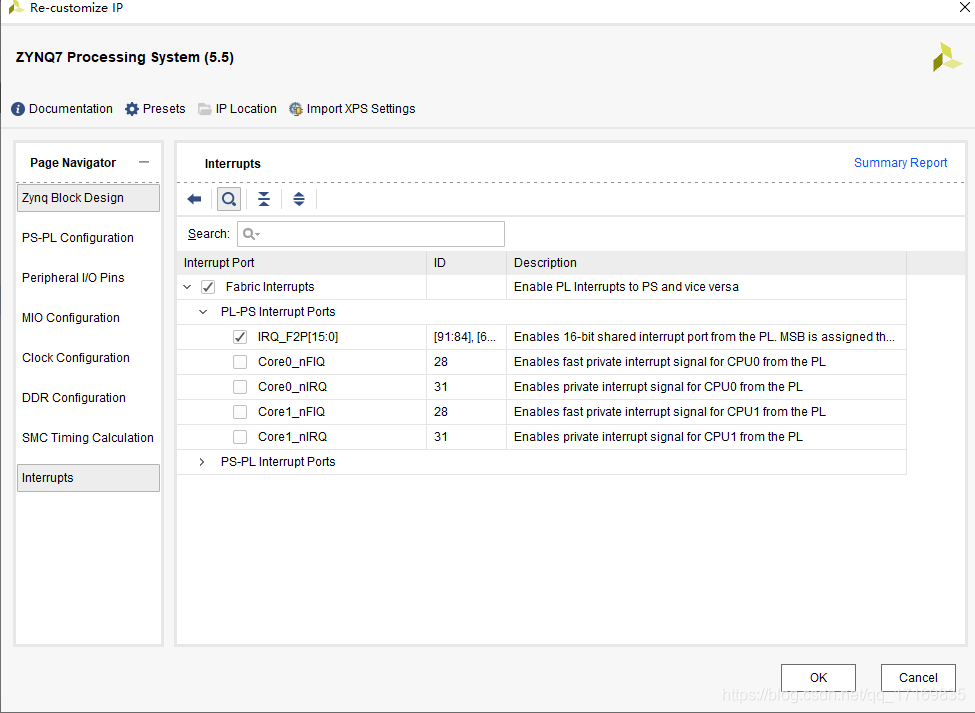 添加zynq7000 Block后,在配置时需要打开PL到PS端的中断