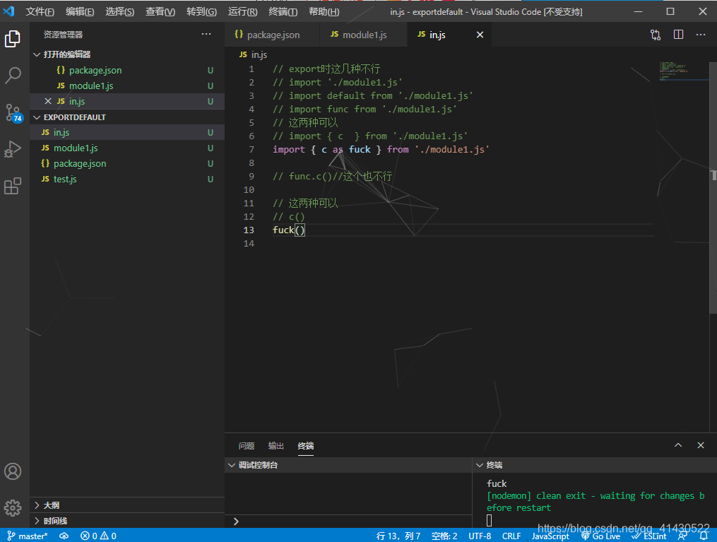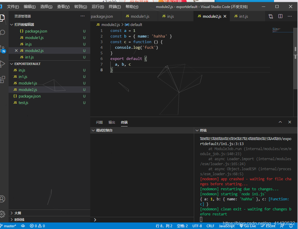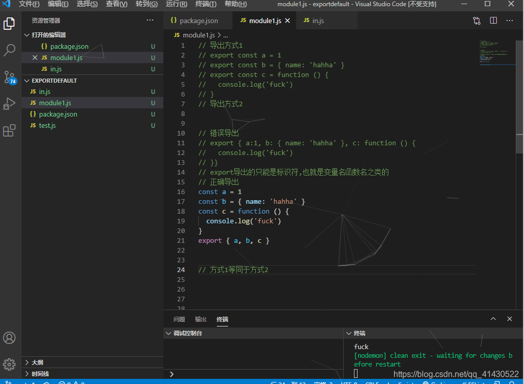 执行之后,会多出来一个pakcage.json文件,这时候如果你还无法模块化,那就看看这个文件里有没有type:module,没有就加上