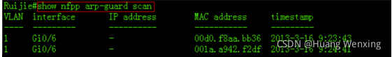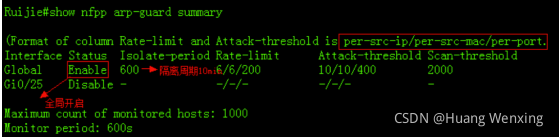 arp-guard rate-limit per-src-ip 20 #每个IP每秒限29个arp报文,多余的ARP报文将被