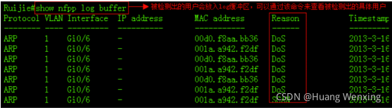 交换机检测每个mac发送的ARP报文大于30个,那么交换机会把该用户放入ARP攻击表,可以对这些用户进
