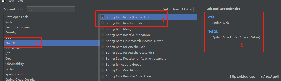 在新建项目中选择web及redis组件