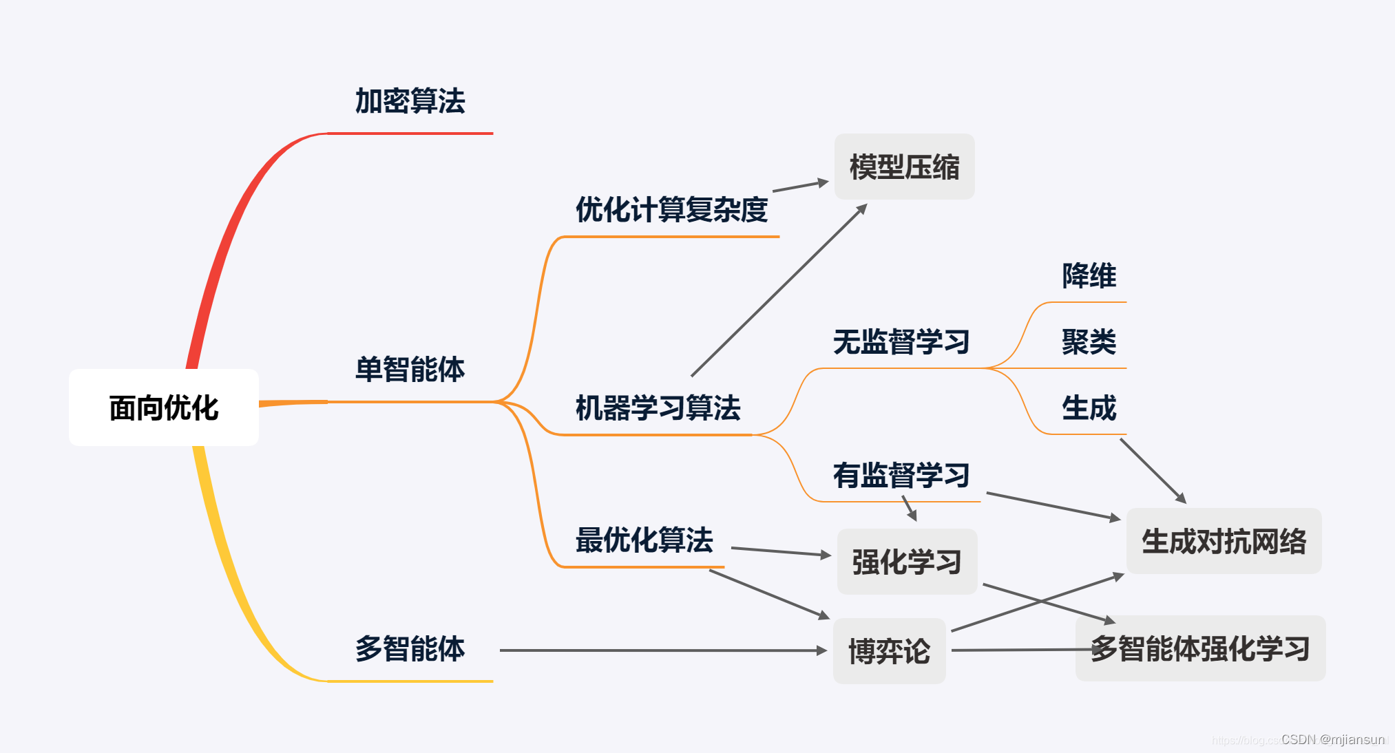 这里主要从面向优化的角度上串讲了以下12种思维方式不同的算法:加密算法、计算复杂度优化算法、最优化算法、有监督学习、无监督学习(降维、聚类、生成)、强化学习、博弈论、多智能体强化学习、生成对抗网络、模型压缩算法等。