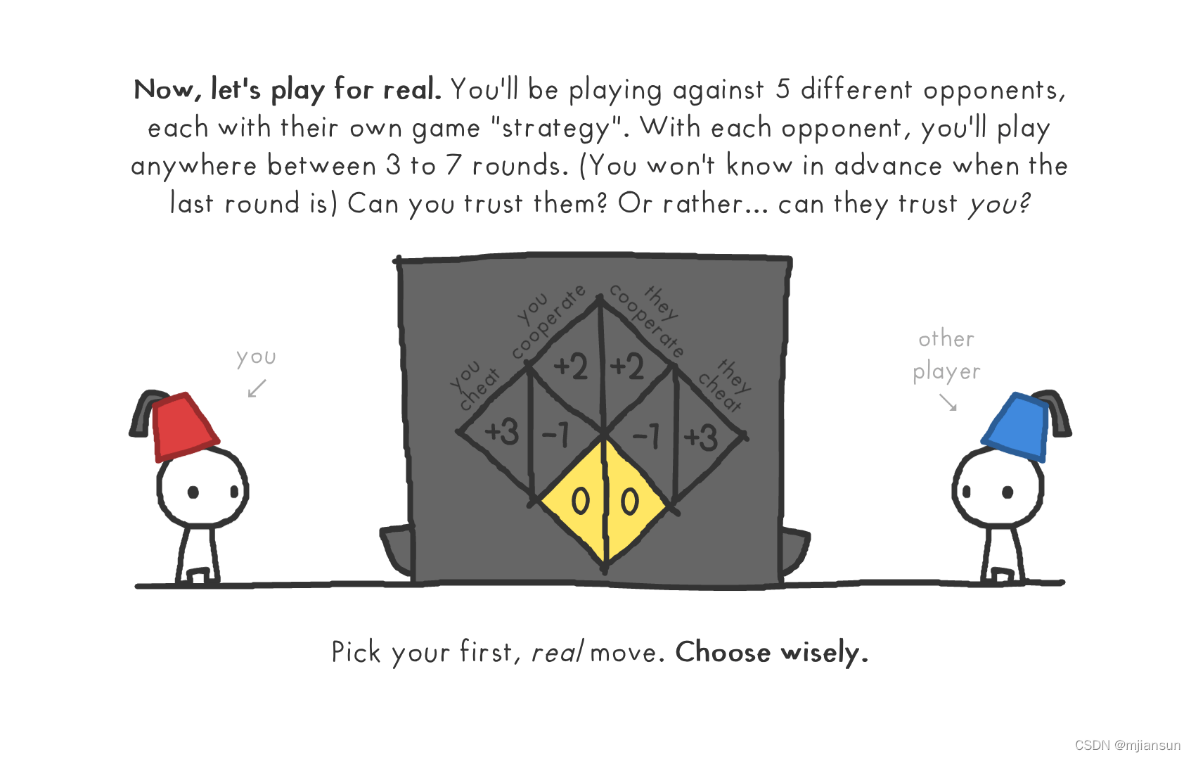。在ACG文化中的《大逃杀》、《赌博默示录》、《弥留之国的爱丽丝》甚至《JOJO》等大量作品中都充满了大量的博弈论场景。有一个小程序的游戏叫作《信任的进化》,简单玩一下就能够体会到博弈论的有趣之处。