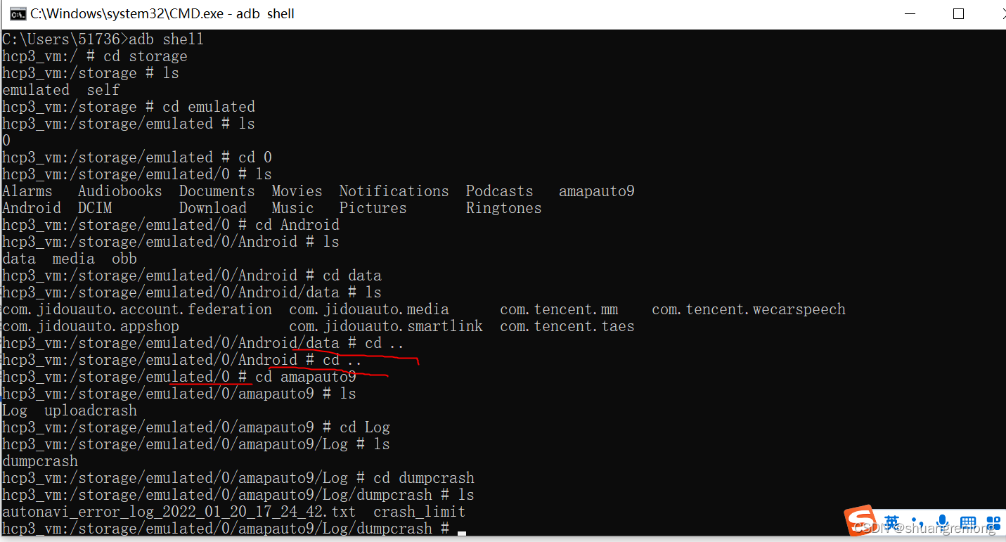 从安卓设备中pull出文件夹或者文件到 d盘 crash目录