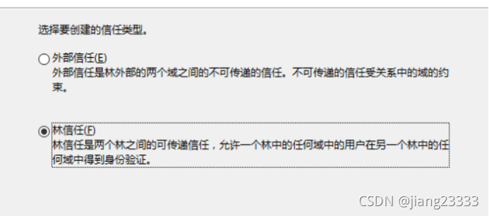 只能在一个 Windows Server 2008 或 Windows Server 2008 R2 林中的林根域和另一个 Windows Server 2008 或 Windows Server 2008 R2 林中的林根域之间创建林信任。在两个 Windows Server 2008 或 Windows Server 2008 R2 林之间创建林信任,可以为驻留在每个林中的每个域之间提供单向或双向可传递的信任关系。林信任对于应用程序服务提供商、正在进行合并或收购的组织、协作业务 Extranet 和寻求管理自治解决方案的组织都非常有用。