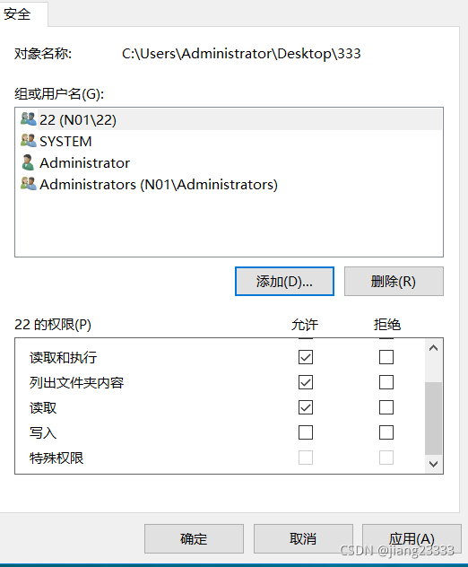 把N01.com新建的共享文件夹333,在将本地域组222添加到共享文件夹333,然后给读写权