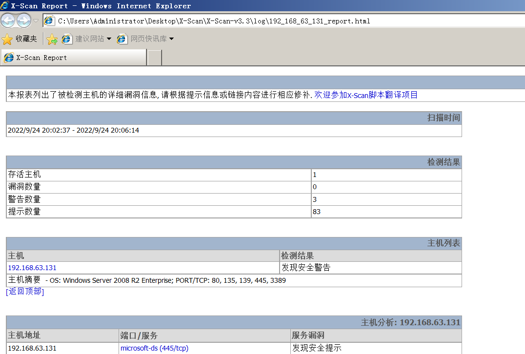 本部分在靶机08r2中进行,目的为扫描出自身可能存在的漏洞