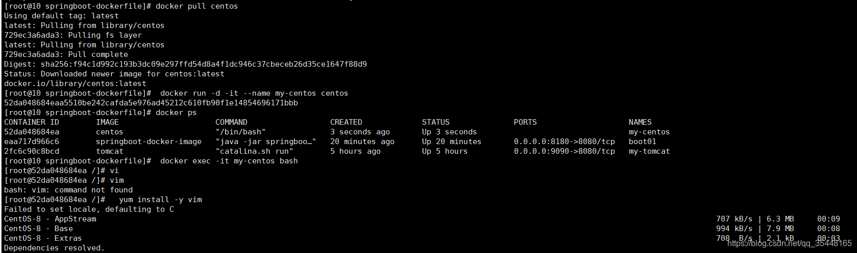 对该container进行修改,也就是安装一下vim命令,然后将其生成一个新的centos