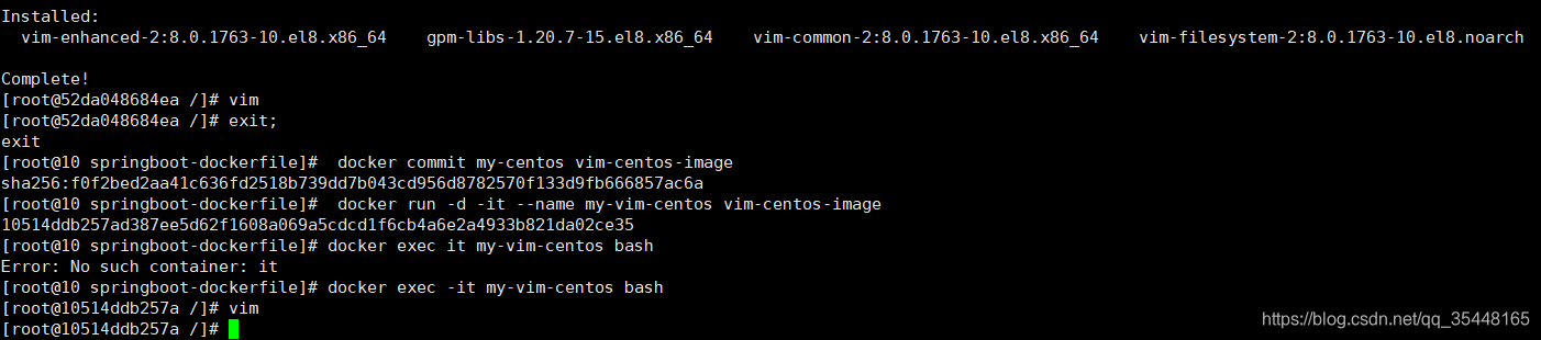 6.退出容器,将其生成一个新的centos image —“vim-centos-image”