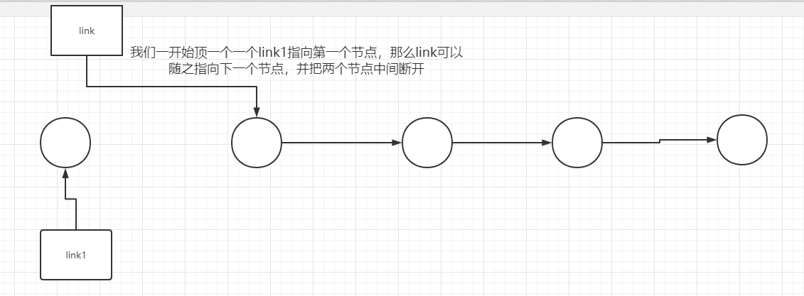 我们要将他反转过来,已知一个头结点,之后我们需要在定义两个结点,为什么是两个不是一个呢,原因如下: